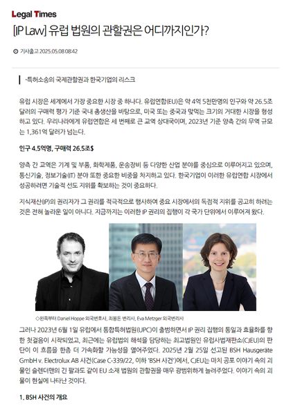 Our partner Daniel Hoppe explores this question in his latest article published in Legal Times Korea. The pice discusses the impact of the Court of Justice of the European Union's (CJEU) ruling in the case of BSH Hausgeräte GmbH v. Electrolux AB (C-339/22) on the international jurisdiction of European courts in patent litigation.