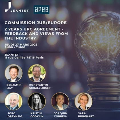 The event is hosted by Jeantet as part of an exclusive event organized by the APEB (Association of European Patent Practitioners) on the theme “2 years UPC Agreement - Feedback and Views from the Industry.”